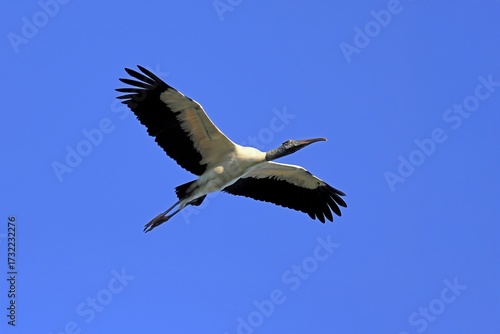 Wood stork (Mycteria americana), adult, flying, St. Augustine, Florida, USA, North America