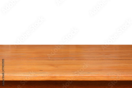 Wood table top on white background