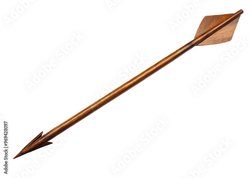 Wooden arrow, side view, transparent background