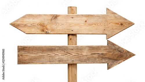 Wooden arrow signs cut out on white