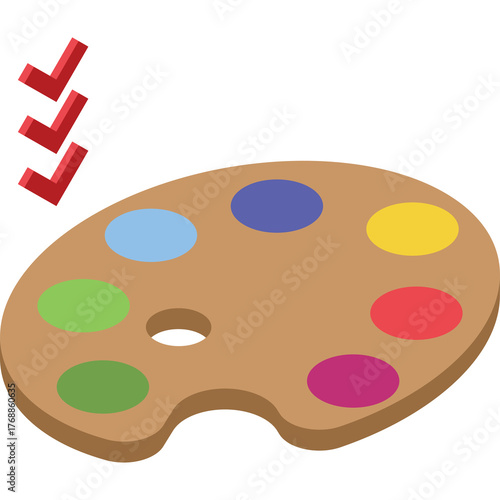Wooden Artist Paint Palette With Seven Different Colored Circles And Red Check Marks On A Transparent Background Conceptual Art And Design