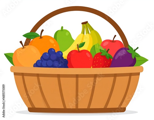 Wooden basket overflowing with a colorful assortment of fresh fruit