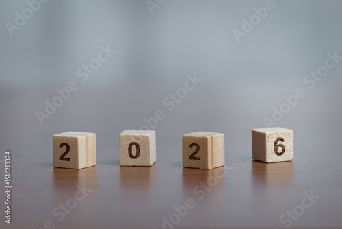 Wooden blocks displaying 2026. Concept of new beginnings, future aspirations, goal setting, planning, and countdown to the new year.