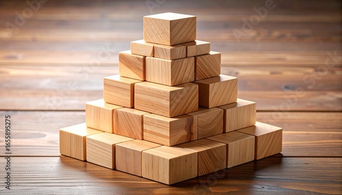 Wooden Blocks Pyramid Structure Growth Success Concept.