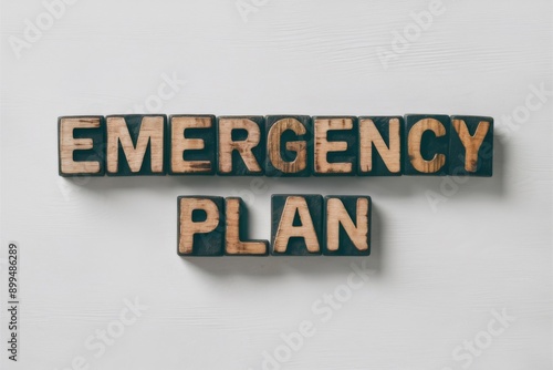 Wooden blocks spelling "Emergency Plan" on white background - disaster preparedness - crisis management - risk mitigation