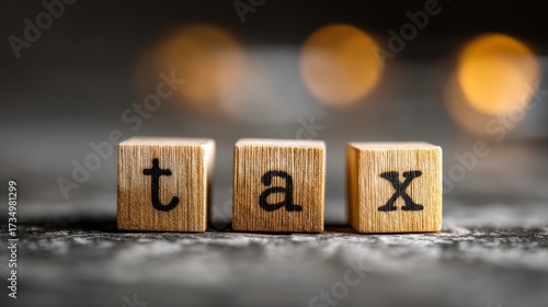 Wooden Blocks with Letters Displaying the Word Tax on a Blurred Background
