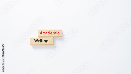 Wooden blocks with words Academic and Writing on white background, concept for education, research, essay, learning, study skills, and higher education achievement.