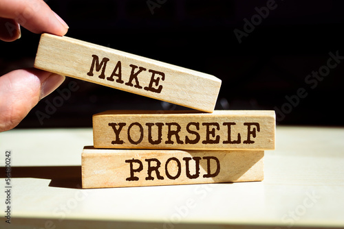 Wooden blocks with words 'Make Yourself Proud '.