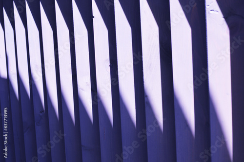 Wooden blue vertical slats, boards with a bright stripe of the Sun. Finishing element. Abstract background.