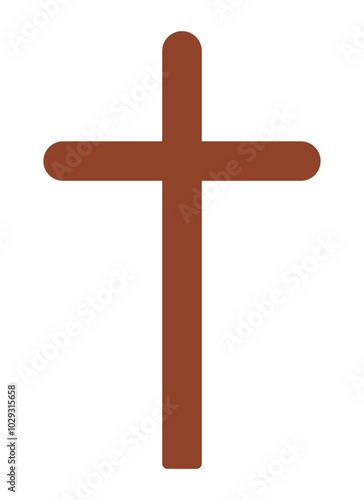 Wooden brown christian cross isolated on a white background. A symbol of the love of Jesus. God vector illustration. Catholic symbol flat vector brown cross. Christian cross symbol icon.