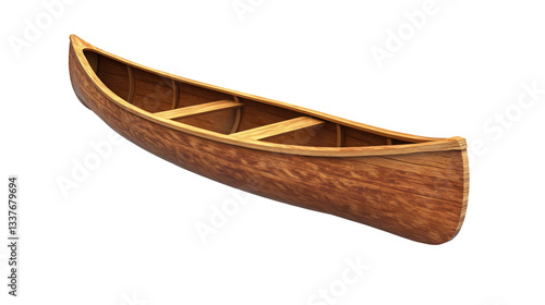 Wooden Canoe with Traditional Design, on a white and transparent background, PNG.