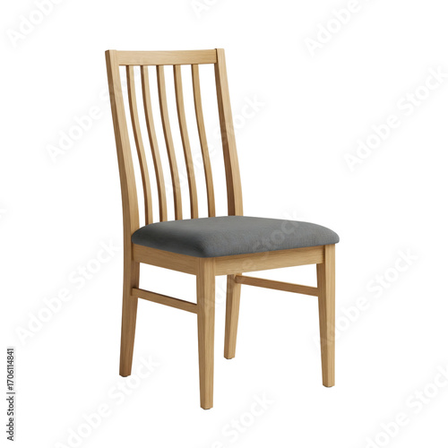 Wooden chair with upholstered seat isolated on a transparent background furniture