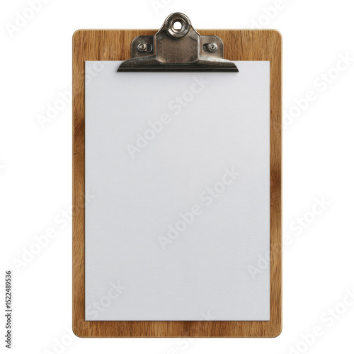 Wooden clipboard with paper isolated on transparent background