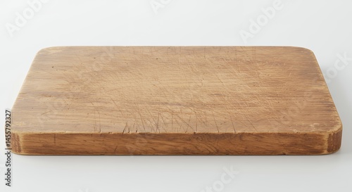 Wooden cutting board on white background for culinary or kitchen concepts