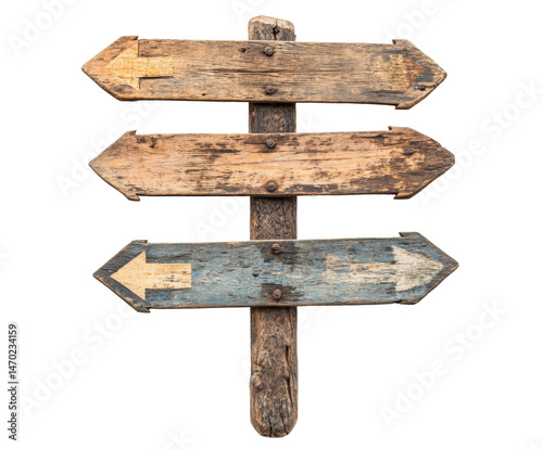 Wooden directional signpost rustic nature landscape design isolated on transparent background