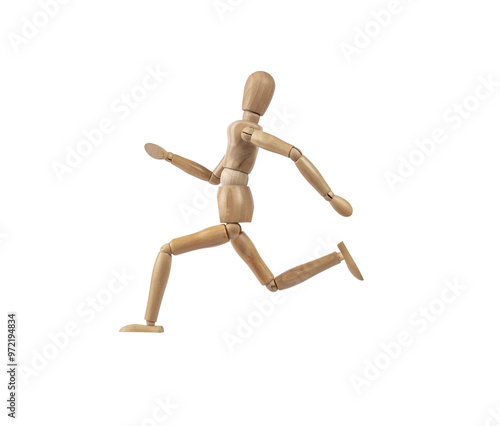 Wooden dummy representing a person running. PNG with transparent background. Concept of activity and sport