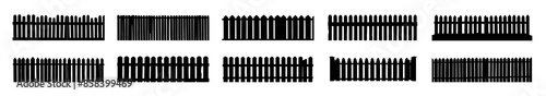 Wooden Fence set Silhouette. Simple garden fence.