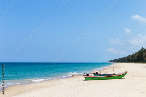Wooden fishing boat on beautiful beach in south of Thailand, tropical island, summer holiday destination in Asia