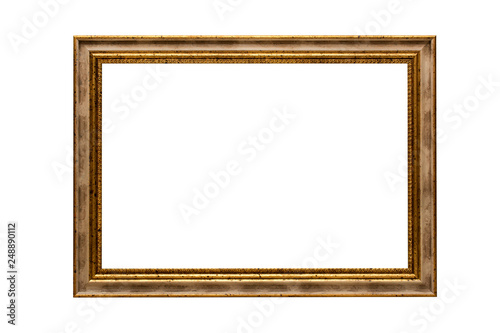 Wooden frame for paintings with patina, made in a classic design. Isolated. Picture frame. White background.