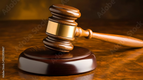 Wooden Gavel With Gold Plate On Dark Brown Background