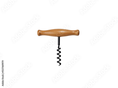 Wooden handle corkscrew isolated on transparent background