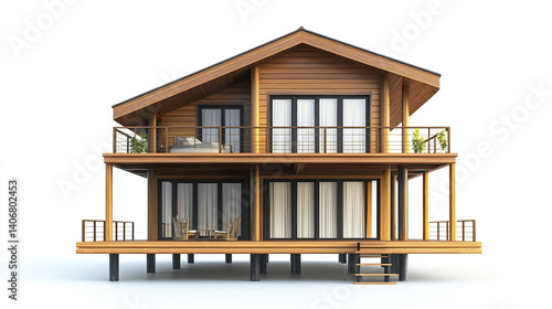 Wooden house with modern design on white background