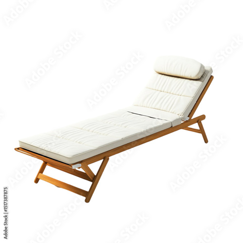 Wooden lounge chair with off white cushions perfect for relaxing outdoors