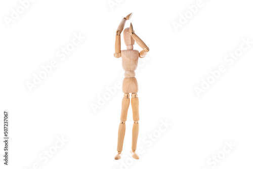 wooden man in martial arts stand isolated on white background. Stretch concept
