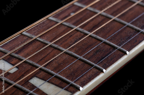 Wooden neck for acoustic guitar. Dust, discontinued music lessons. Abandoned game