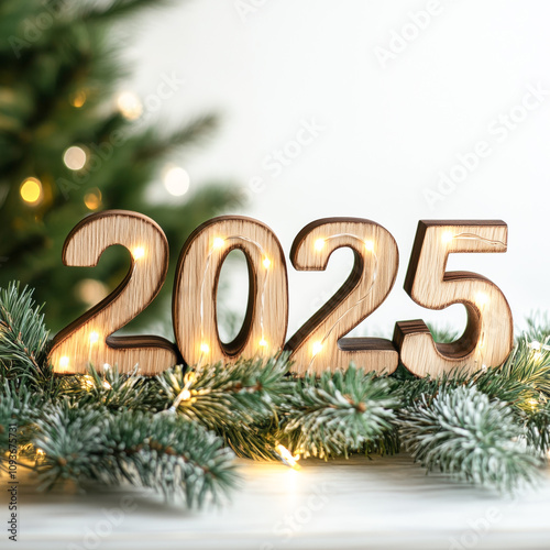 Wooden numbers 2025 with garland