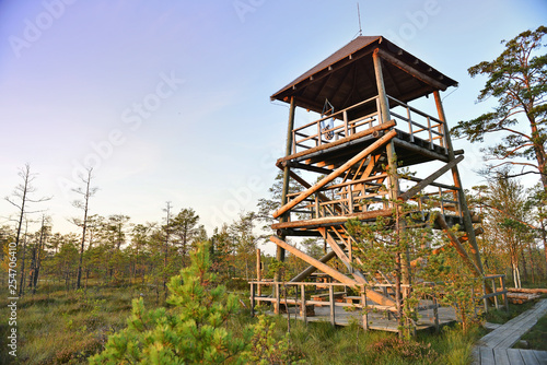 Wooden observation tower in a natural park