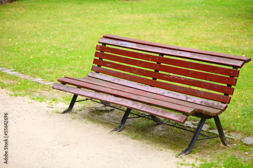 wooden park bench at a park