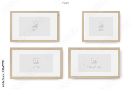 Wooden photo frame or picture frame for interior design and decoration. Vector.
