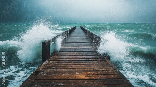 Wooden Pier Bathed in Stormy Ocean Waves