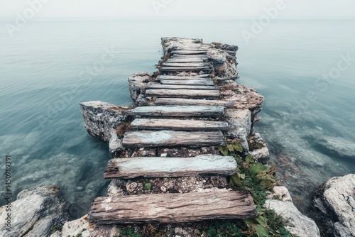 Wooden pier on a misty lake