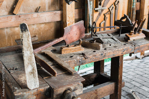 Wooden planers for carpenter to work on carpenters desk.