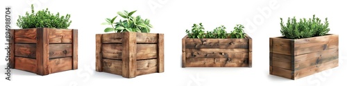 Wooden planters filled with lush greenery, perfect for enhancing any garden or indoor space with a natural touch.