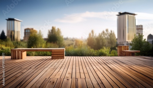 wooden platform with rustic timber flooring for outdoor furniture and architecture background