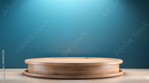 Wooden Product Display with Blue Spotlight