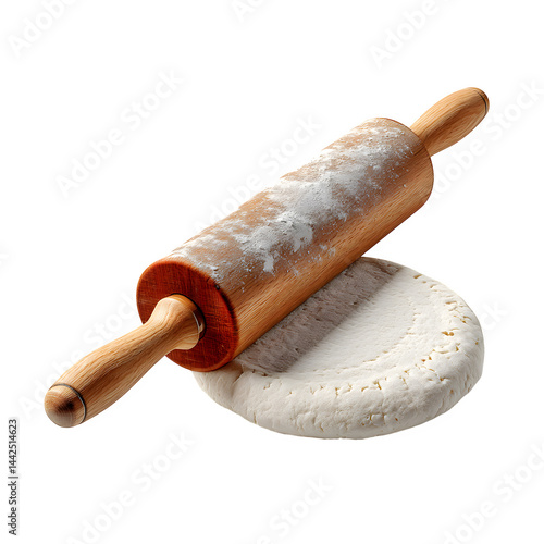 Wooden Rolling Pin and Dough for Baking Bread or Pizza