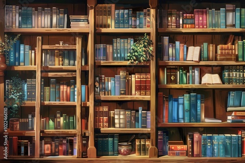 Wooden shelves showcase a rich collection of textbooks and academic literature, inviting exploration and deep learning opportunities. Generative AI
