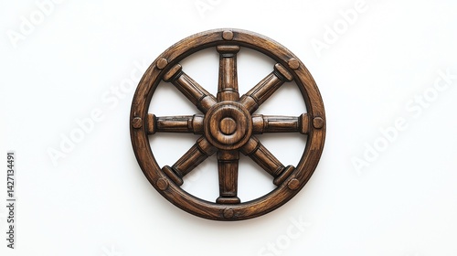 Wooden ship steering wheel mounted on a wall, showcasing craftsmanship and nautical design elements