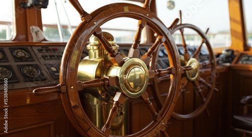 Wooden ship wheel close up