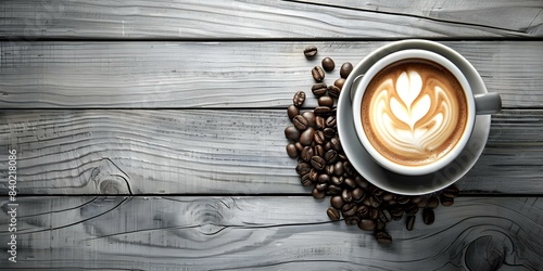 Wooden space with latte coffee centered copy space selective focus. Concept Latte Coffee, Wooden Decor, Selective Focus, Copy Space, Coffee Break