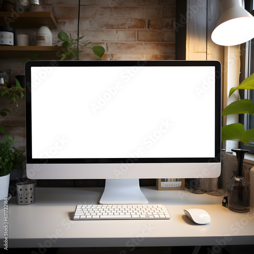 Wooden Table Computer Mockup Template Workspace area