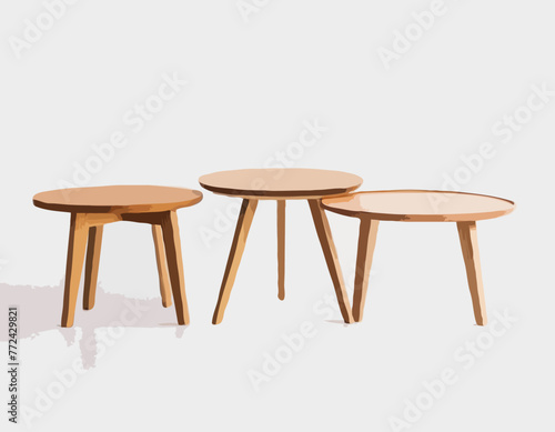 wooden tables in cartoon style. Vector illustration of round and square coffee tables home interiors on white background.