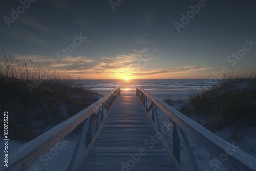 Wooden Walkway Leading to Beach Sunset - Coastal Landscape Photography