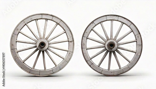 Wooden white wagon wheel isolated on white background.