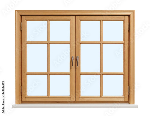 Wooden window frame window design window pane window with blue sky on transparent background