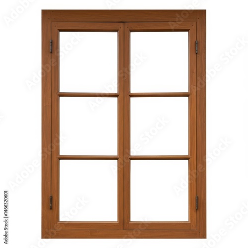 Wooden window frame with six panes isolated on white background